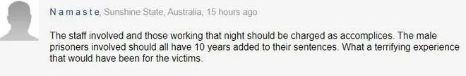 “当晚的监狱工作人员都该被指控为从犯,所有的涉案男性都该被加刑10年!这对受害者来说是一次多么可怕的经历啊...”