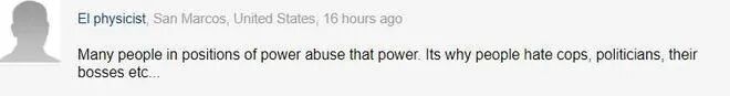 “许多身居要职的人滥用权力,这就是为什么人们会讨厌警察、政客和老板...”