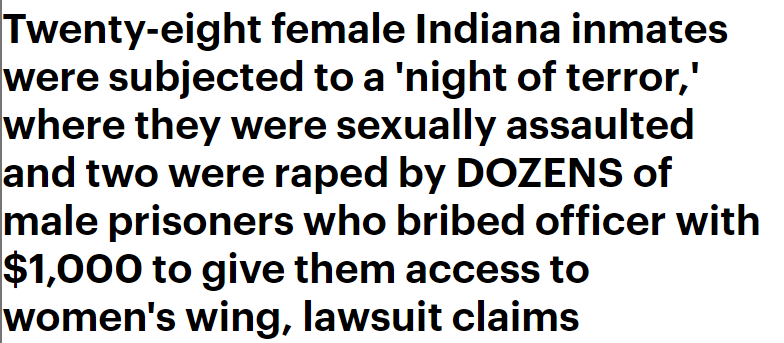 “恐怖之夜:男囚犯贿赂狱警1000美元买下女囚牢房钥匙,28名女性囚犯遭受性侵犯,其中两名被几十名男性囚犯强奸。”