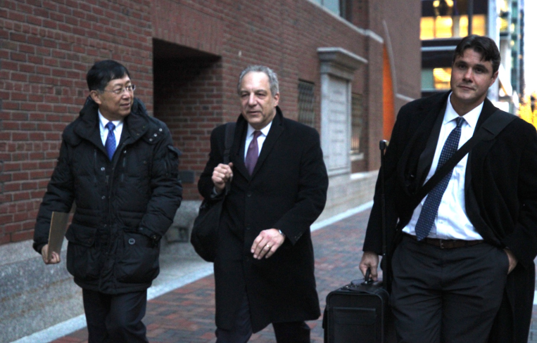 赵捷的辩护律师还告诉陪审团,他将出示证据证明,赵和他的妻子经常“根据生活经历和文化”向他们的朋友提供大笔贷款。 周一,赵捷(左)和他的辩护团队成员一起离开法院。图片来源:哈佛校报