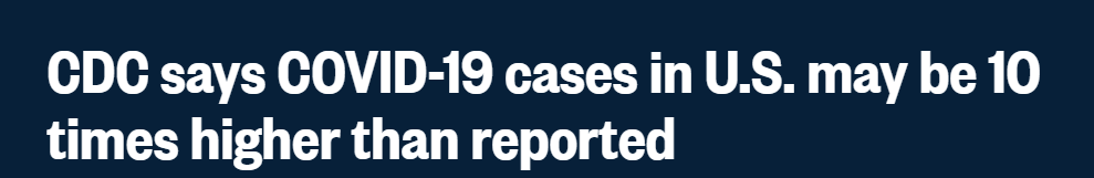 NBC、FOX、华盛顿邮报消息,根据美国疾控中心(CDC)最新估计,美国感染新冠的真实人数可能超过2400万,是目前官方数据的10倍。