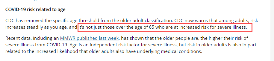 同时,CDC已经把“65岁以上为高风险”的表述删除,研究表明,无论年龄大小,年轻人如果存在这些健康问题,也容易发展为重症患者。