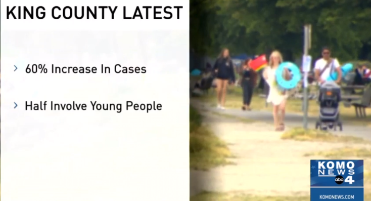 从6月14日至6月20日期间,金县COVID-19病例比前一周多出156例,总体上涨了大约60%。而这些新病例中,有大约一半,来自20至39岁的年轻人。