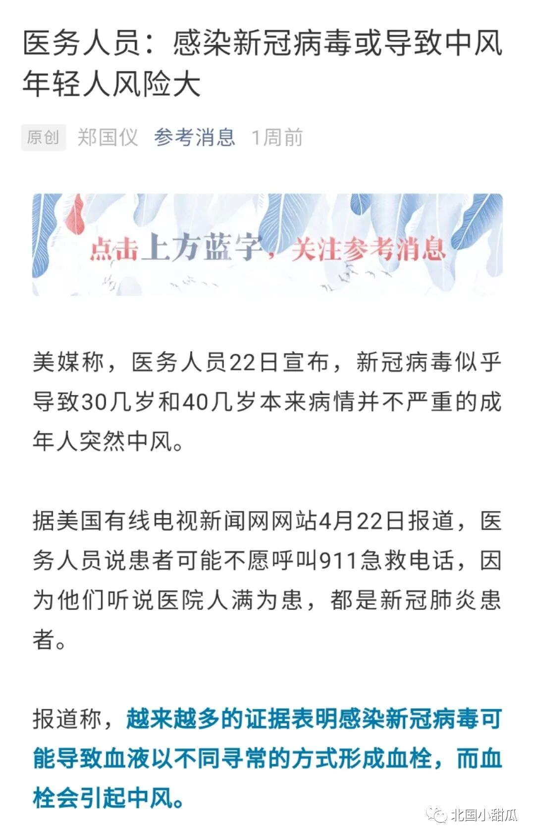 纽约西奈山卫生系统神经外科医生Thomas Oxley和他的同事警告称:新冠病毒会导致一些没有症状或症状较轻的,新冠肺炎年轻患者中风。