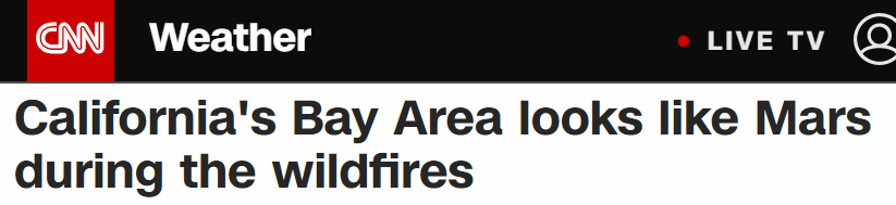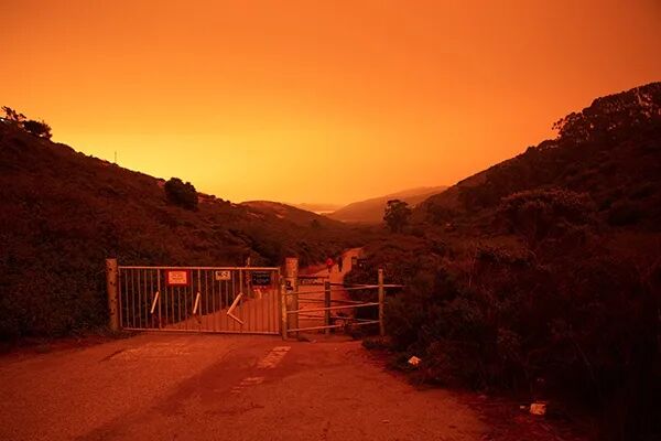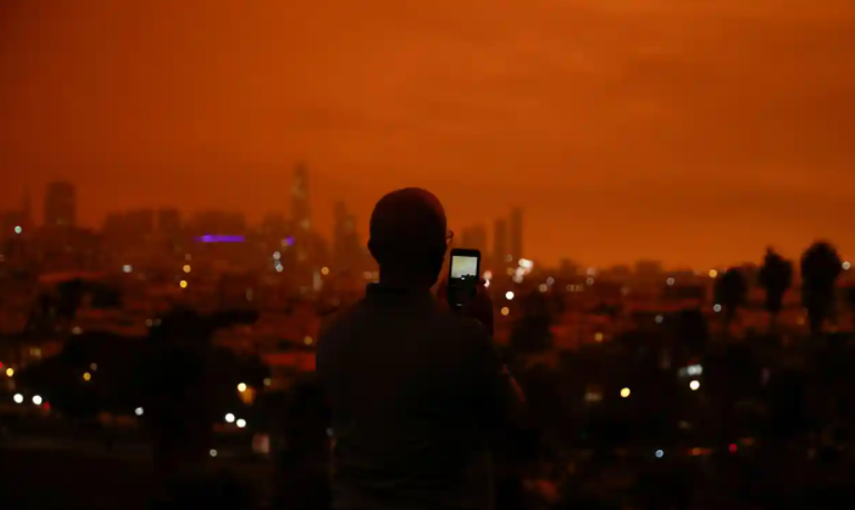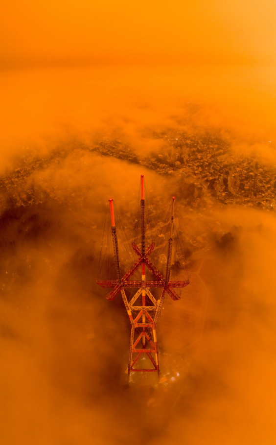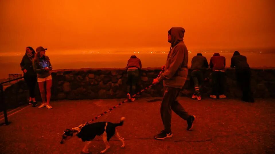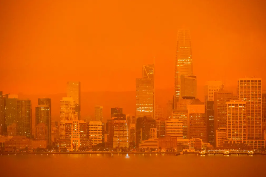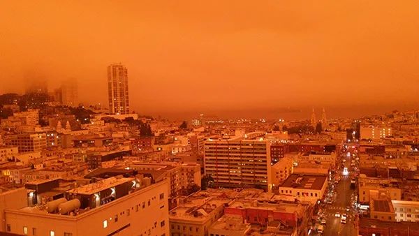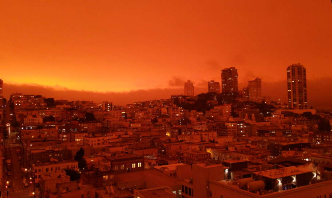 这些熊熊燃烧的野火夹击旧金山,导致大量烟雾和灰烬飘至城市上空,造成这一如同灾难大片的末日景象。
