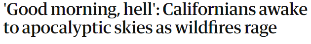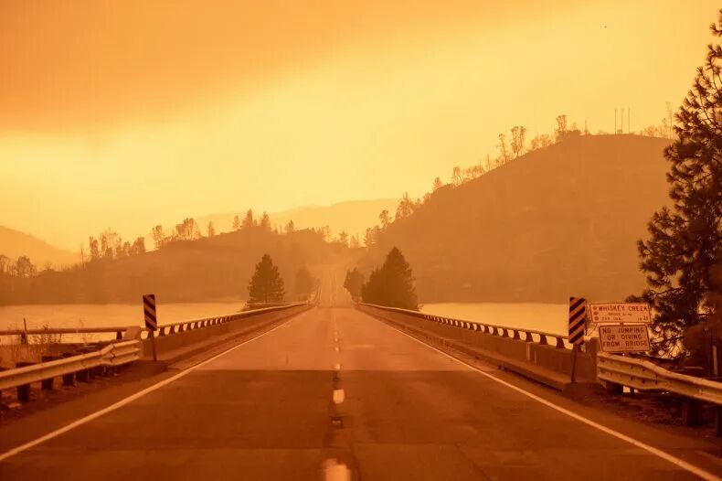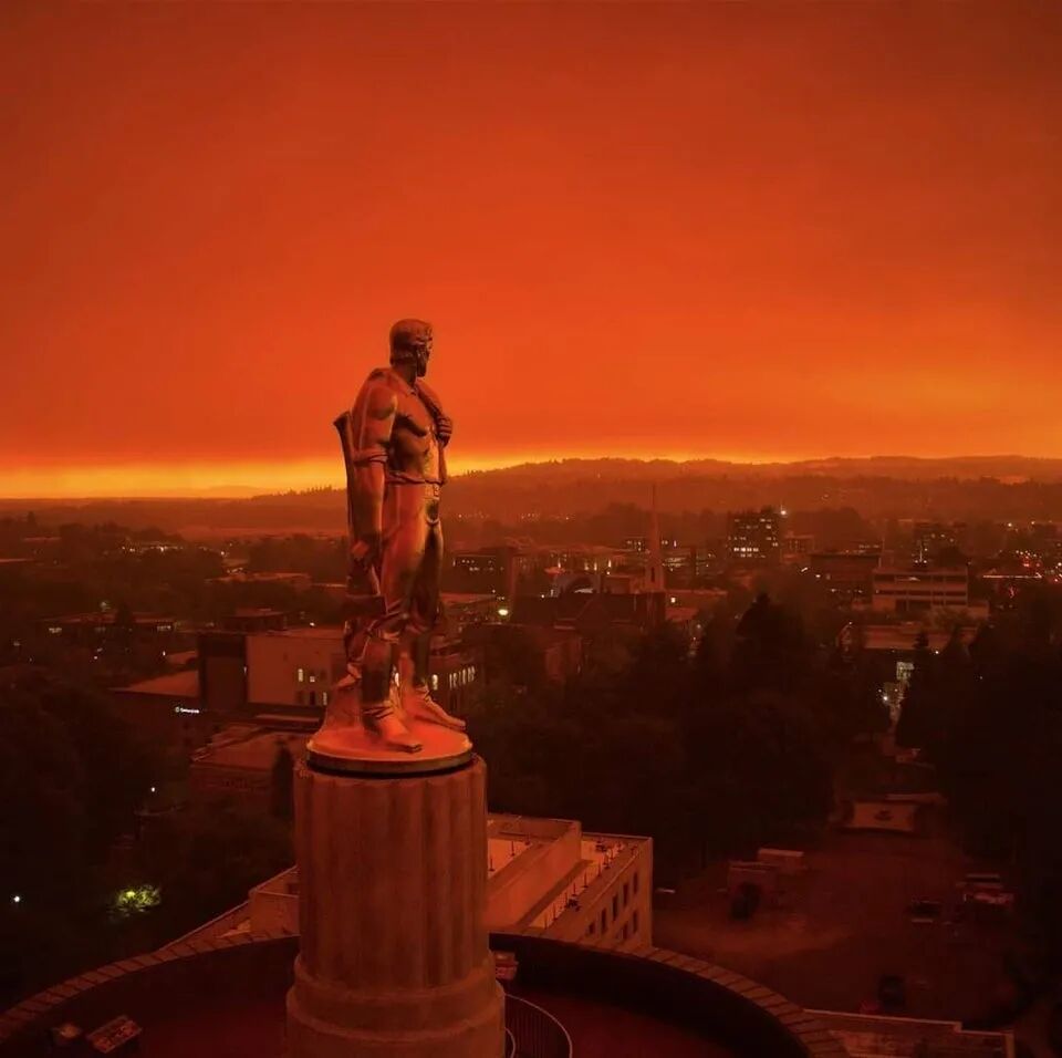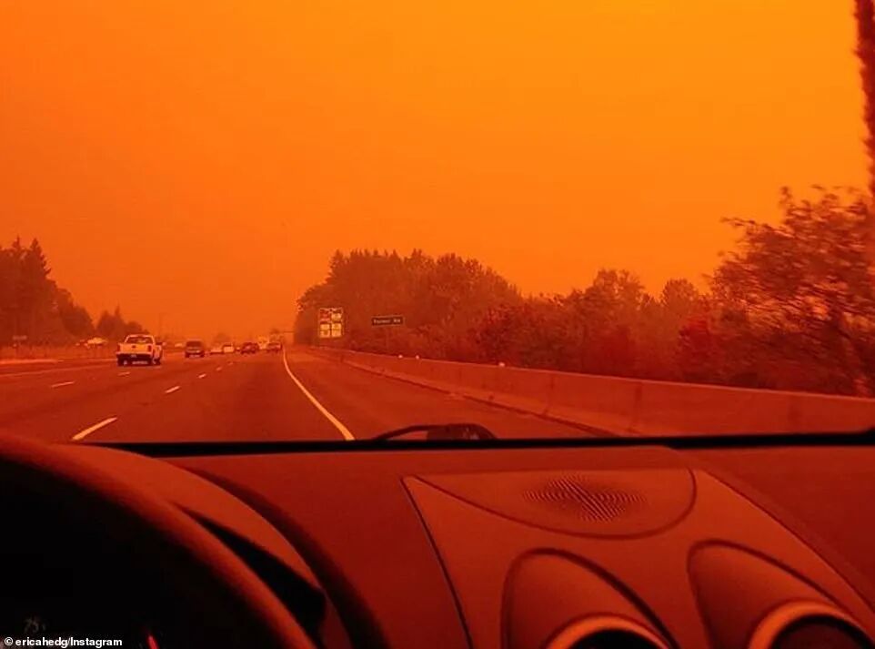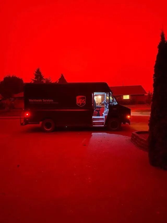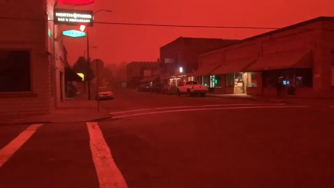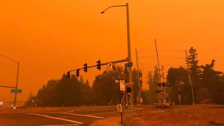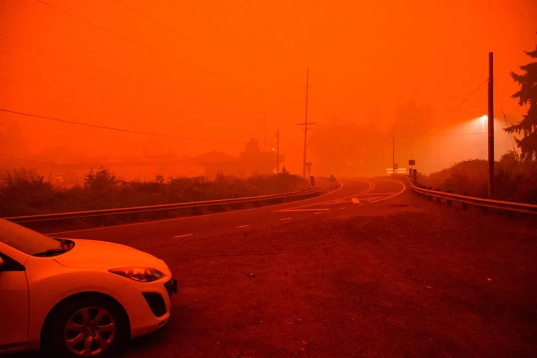 俄勒冈州居民醒来发现,变天了,“橘红色的天空,没有一丝光亮,像火星,像末日,就是不像人间”