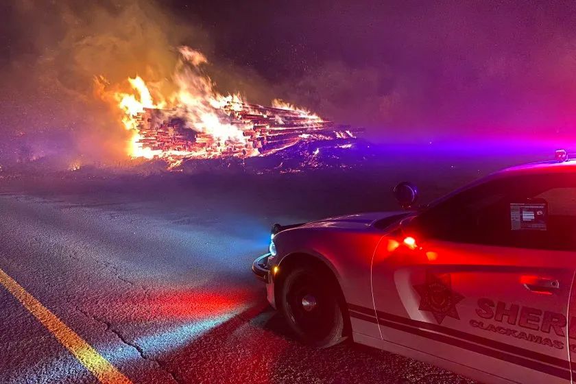 因狂风吹断树木而压倒电线杆,再加上野火狂烧,导致俄勒冈州数万户停电。