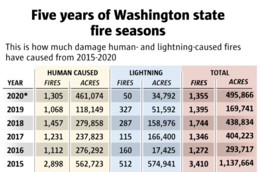 截至周三上午,整个华盛顿地区大约有500000英亩土地被烧毁,并持续增加。不过今年山火虽然严重,但是仍然没有超过2015年的记录,当时大火烧毁了超过100万英亩土地。