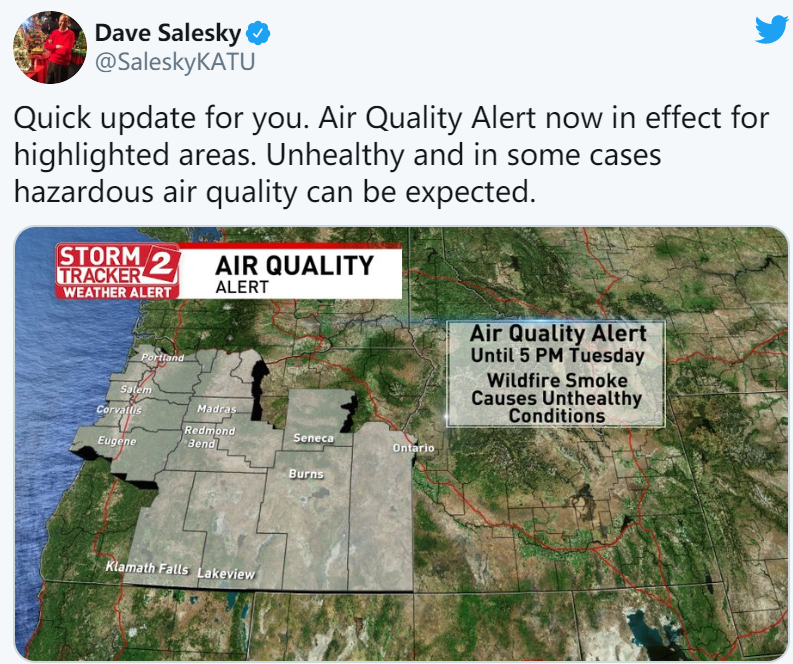 以下是俄勒冈州卫生局对空气质量的警告: