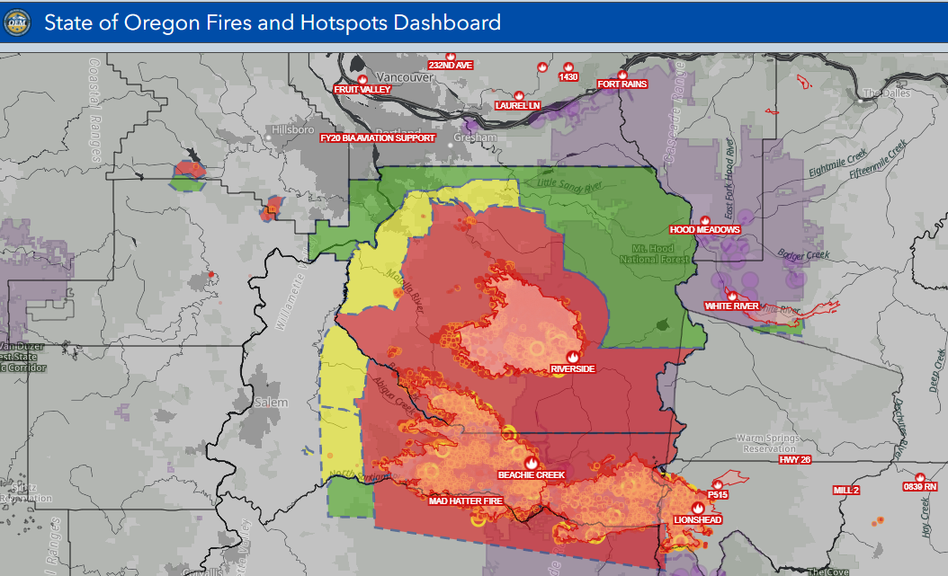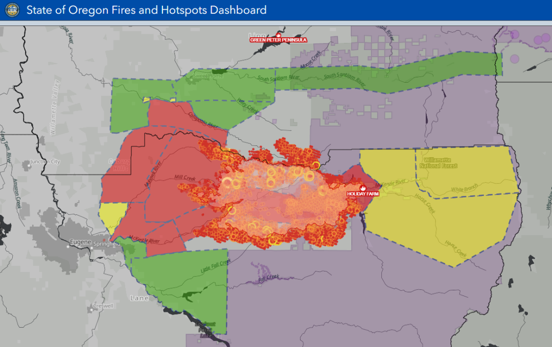 俄勒冈州火灾及撤离地图