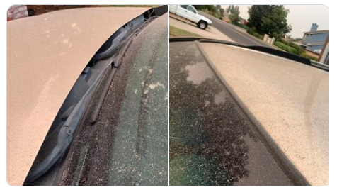 天空中飘着灰!在车上全是灰。