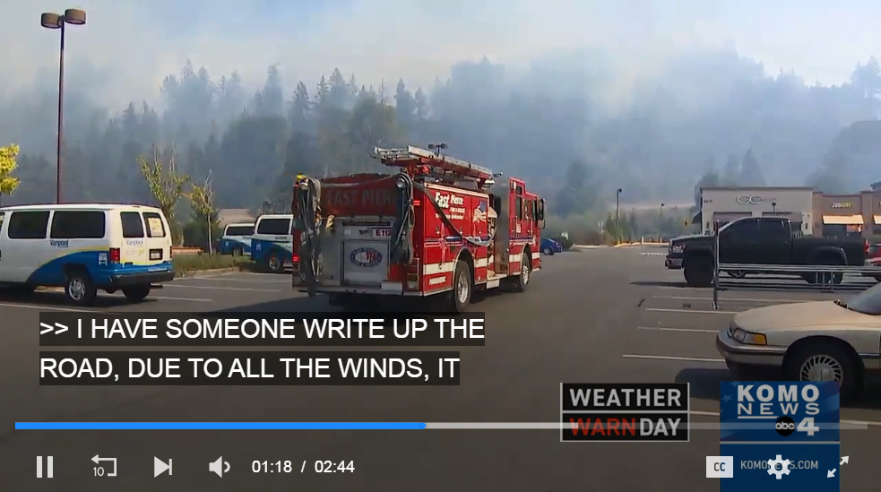强风还导致电力中断。普吉特能源公司称,有超过5000名用户断电。火灾还损坏了信号塔,许多人的手机服务也被切断了。
