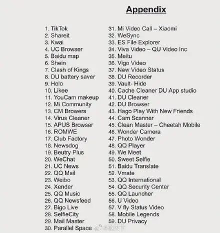 简而言之,一切在印度风生水起的软件都要被禁用。