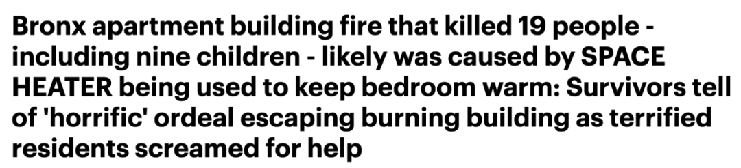 2007年3月,也是因为电暖器故障,纽约一栋公寓被引发大火。那次事故中有9名儿童和1名成人死亡。