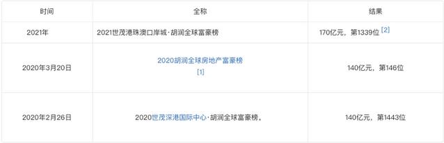 2020年2月26日,戴永革家族以140亿元人民币财富名列《2020胡润全球富豪榜》第1443位。