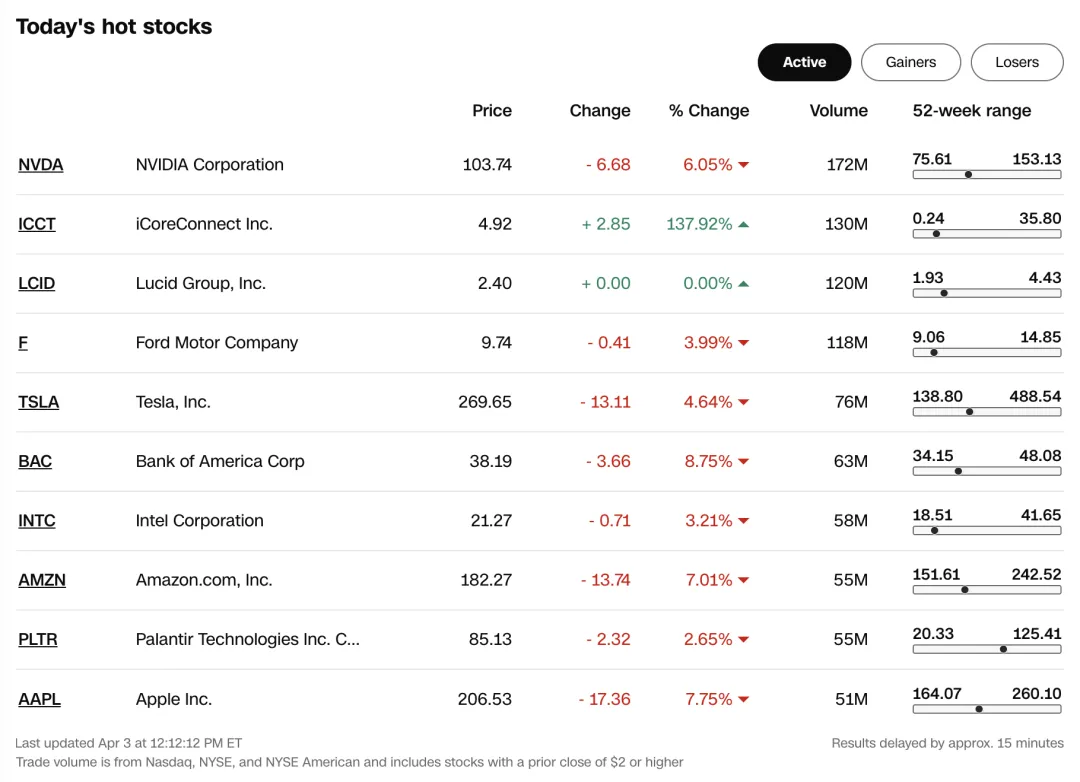 科技股也纷纷下跌,苹果股价暴跌7.5%、英伟达下跌3.7%、特斯拉下跌5.9%、亚马逊下跌7.2%......