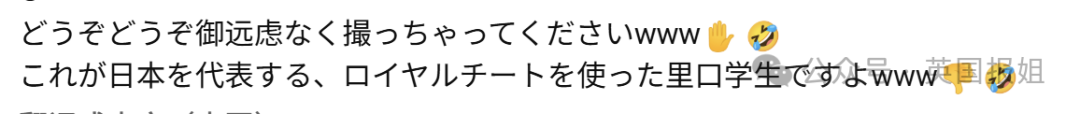 这事儿传出去之后日本人倒是很开心,希望中国留学生加大力度: “请随意拍照,不用顾虑哈哈哈哈,这就是代表我们日本形象的、上个学都有走后门的皇室人士。”