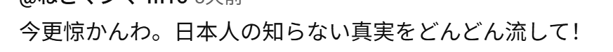 “事到如今也不惊讶了,希望中国人多放点儿我们日本人不知道的真相出来。”