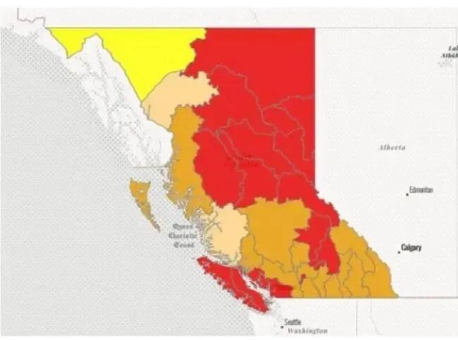 炎热的夏季搭配持续的山火,已经让许多BC省社区开始限制用水。省内34个水流域中,已经有17个至少达到了干旱级别中的四级。