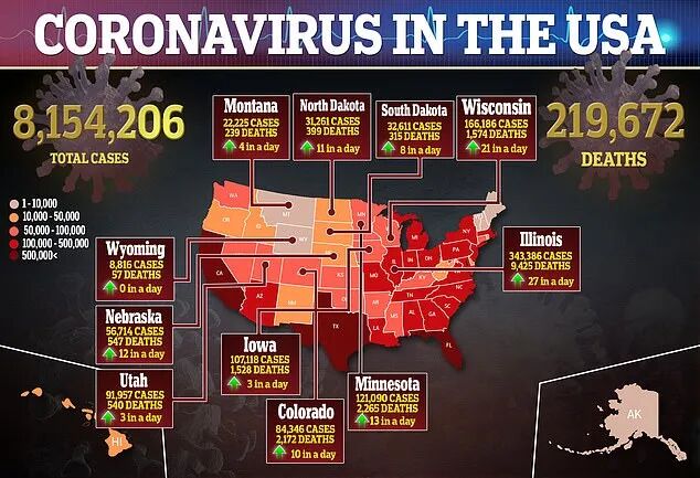 阿拉斯加、爱荷华、肯塔基、蒙大拿、内布拉斯加、俄克拉何马、南达科他、犹他、威斯康星和西弗吉尼亚的平均住院人数均创历史新高。只有哥伦比亚特区和夏威夷地区的住院人数在下降。