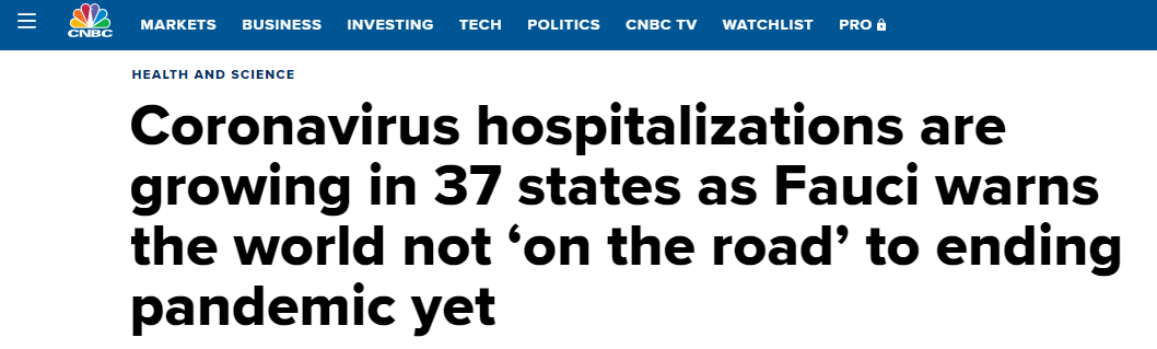 美国迎来第三个新冠确诊高峰,37个州住院率上涨,传染病专家福奇警告:疫情会非常非常严重!