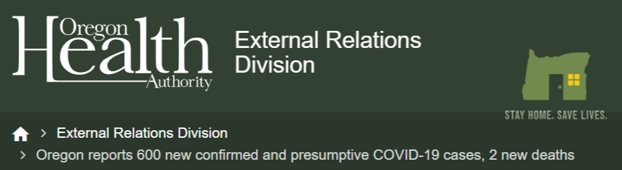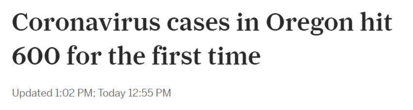 10月30日,俄勒冈卫生局报告了新确诊600新冠病例,2例死亡,再打破了单日确诊历史记录,自大流行开始以来。