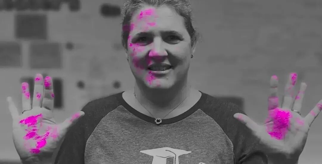 Rober解释道,细菌在这样的表面可以存活9个小时。即使学生们在一天之内洗了很多次手,但他们的脸上和手上都沾满了“细菌”。
