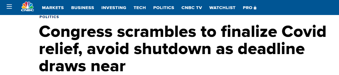 美西时间2020年12月17日,据CNBC报道,今天,美国国会试图就一项新冠病毒救助协议进行最后的讨论。与此同时,由于缺少联邦资金,白宫即将关闭政府,并放任数百万人失去失业救济。