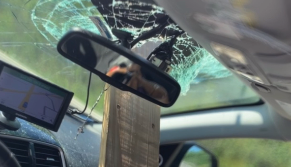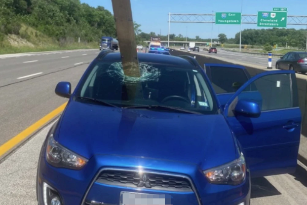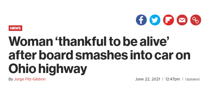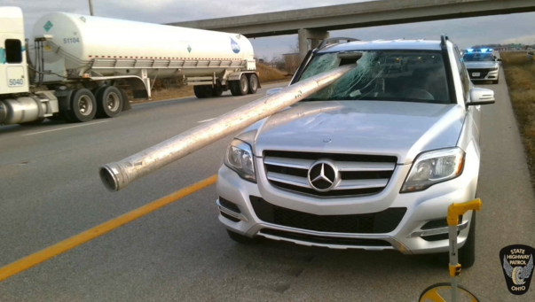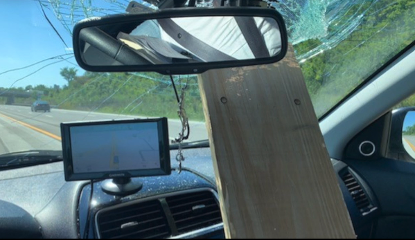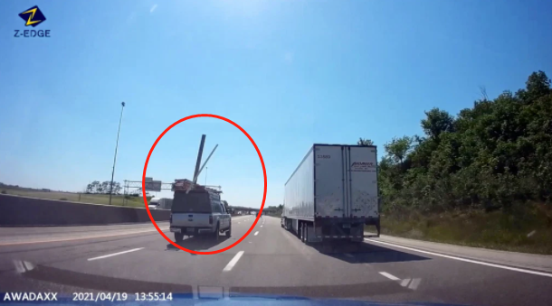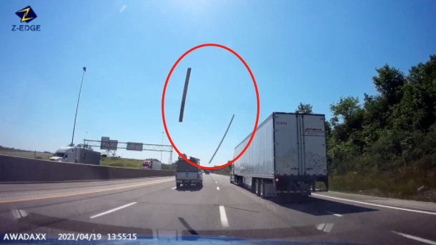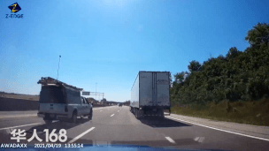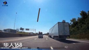 走高速擦肩“死神”!前方卡车木板“飞出” 直插后车挡...