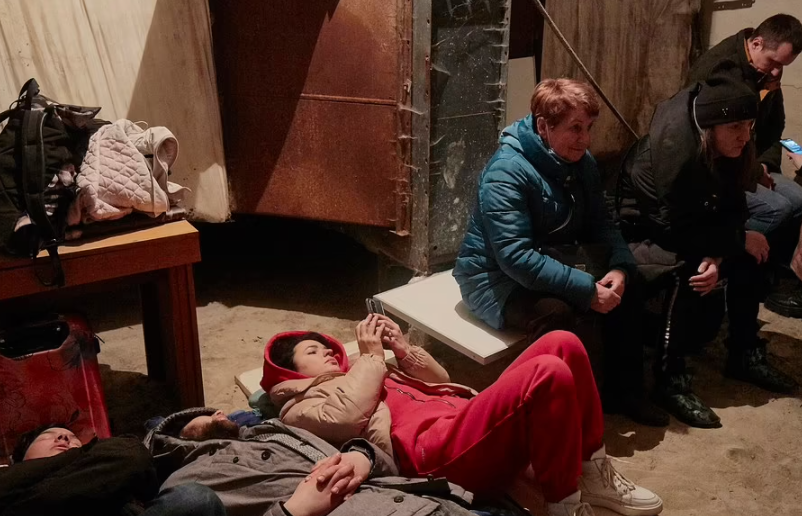 当地时间2月25日,乌克兰的一个地铁站,人们拥挤在一起逃避战火。