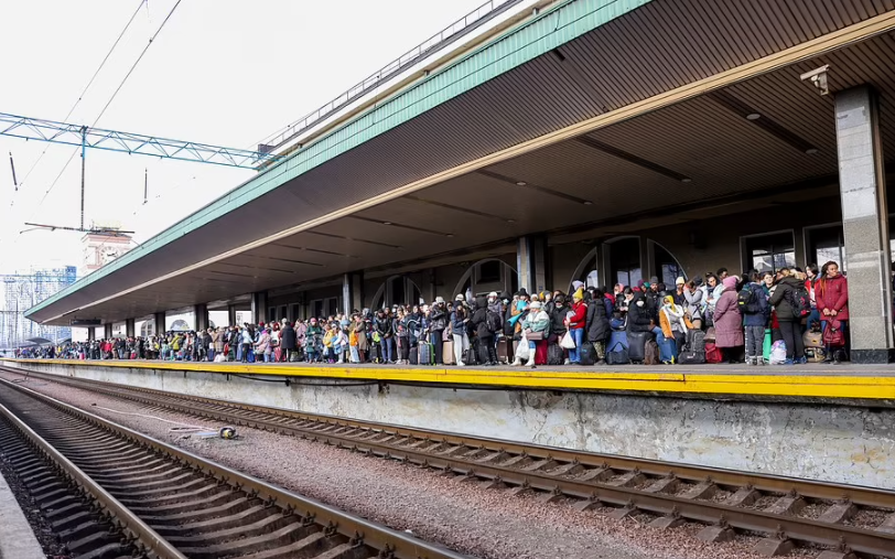 乌克兰首都上下上演灾难片,四处都是战火狼烟,人们有车的开车出逃,没车的背起孩子,坐地铁出逃,却不知道能去何处,公车票和食粮被一抢而空。