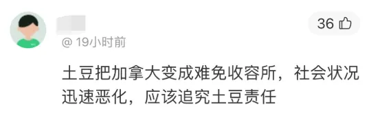 [color=rgba(0, 0, 0, 0.9)]“土豆把加拿大变成难民收容所,社会状况迅速恶化,应该追究土豆责任。” [color=rgba(0, 0, 0, 0.9)]