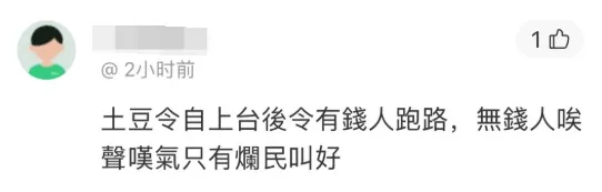 [color=rgba(0, 0, 0, 0.9)]“土豆上台后令有钱人跑路,没钱人唉声叹气,只有难民叫好。” [color=rgba(0, 0, 0, 0.9)]