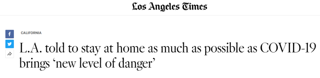 洛杉矶县也发布公告称: 疫情进入"危险级别" 未来2-3周尽量呆在家里,减少外出!