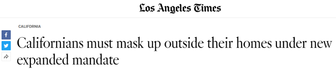 [洛杉矶新闻]加州下令强制戴口罩 洛杉矶疫情进入危险级别 未来2周别...