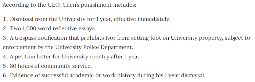 但现在,Chen 还是因为去年秋季学期违规而面临被开除的窘境!