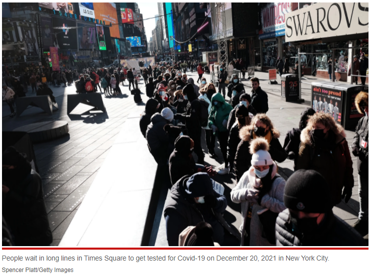 [纽约新闻]突发!美国首例Omicron死亡,新增病例占73%,纽约成重灾区占92%,排长队检测!纽约整学区明天开始远程授课...