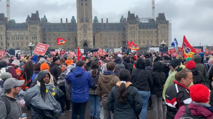 工人们此前在渥太华和加蒂诺的多个地点设立了纠察线,包括福捷的办公室。但周三,工会们被告知要在国会山聚集。