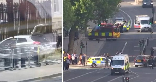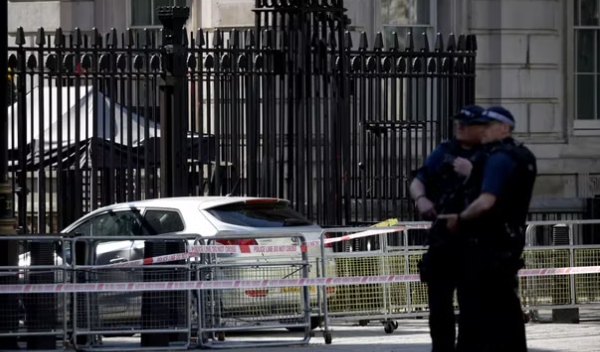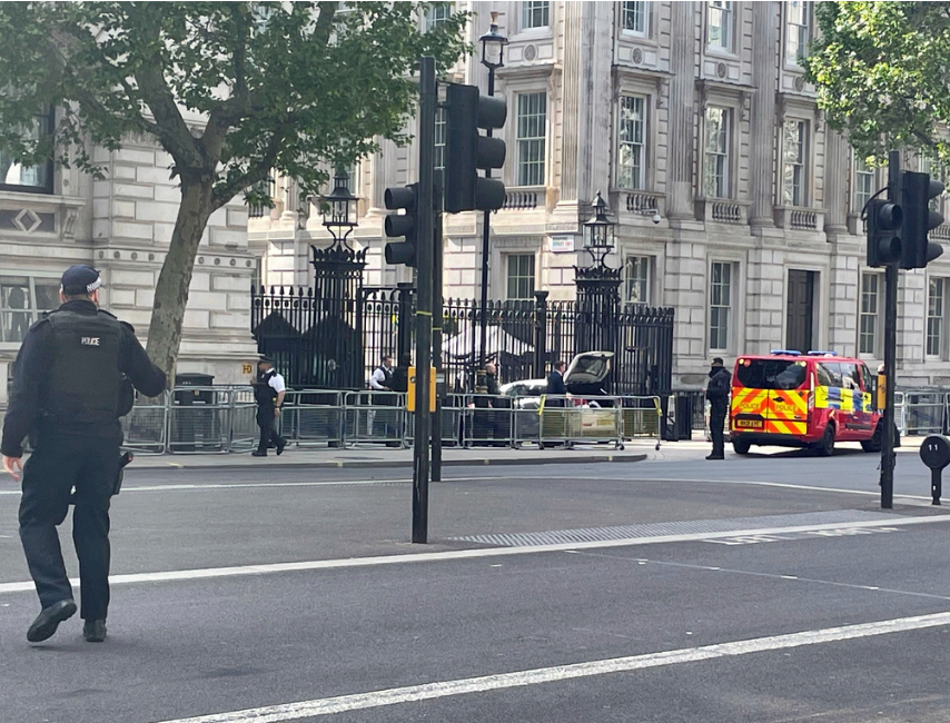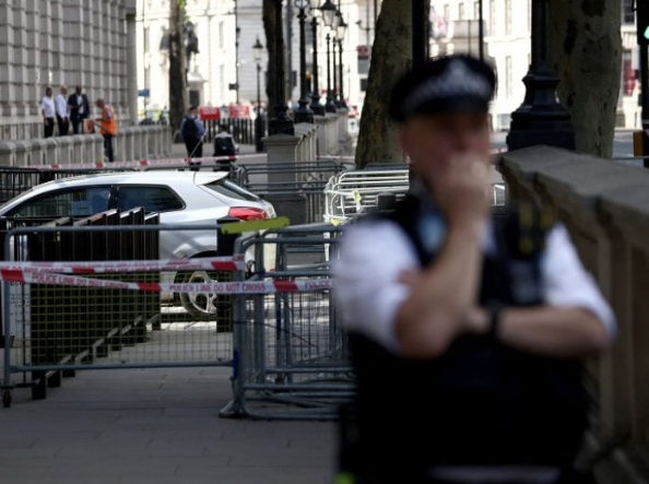 伦敦唐宁街突发! 男子开车猛冲向首相府 路人逃命 武警拆弹小组出动 整条街被封!