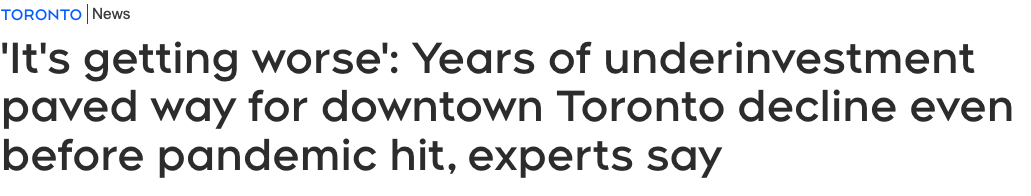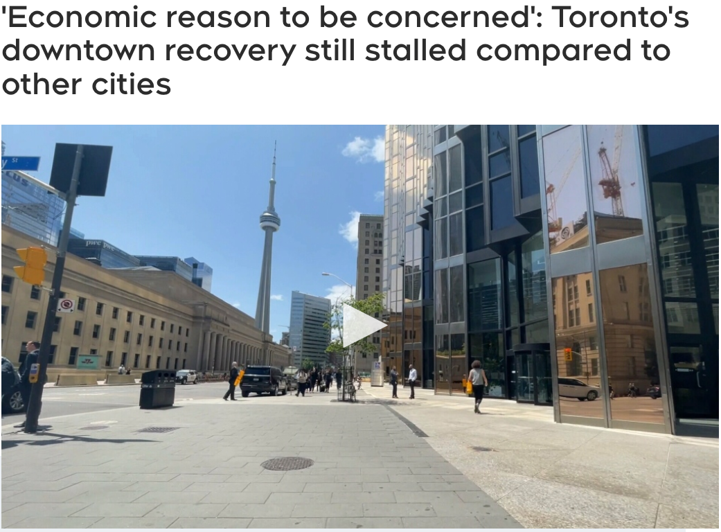 在多伦多市长选举前夕,CTV新闻近日推出一个《多伦多市区衰落》系列片,讲述多伦多Downtown已经失去昔日的繁华,日渐衰落,街道冷清,餐桌没人,满街流浪汉,很多商铺关门,像鬼城一样,希望能够唤醒市长候选人真正关注多伦多的前途。 在《多伦多市区衰落》(Downtown Decay) 系列中,首先讲述多伦多现在的真实境况。 在系列片中,CTV News问道:多伦多核心地区是否在接缝处分崩离析,它是如何走到这一步的? 当一名游客在市中心央街(Yonge Street)拖着行李箱走路时,一名在庇护所(shelter)男子向路人大喊大叫,并在游客身后大喊,行乞要现金。 游客没理,拖着手提箱继续向前走,经过垃圾堆积如山的垃圾桶,旁边还扔着一张床垫和破损的托盘,然后很快就要离开人行道,那里的道路已经烂了。 这是市中心一个温暖的星期三,在多伦多一些最高塔楼的阴影下,市中心有年久失修和腐朽的迹象。 CTV新闻记者在市中心报道说,现在是5月份周中,天空晴朗,多伦多市中心的午餐时间,前街露台的餐桌已经摆好,办公室人群稀少,椅子空着。 这是一个明显的迹象,表明现在市中心的人越来越少,市民有很多理由避开该地区。 在Yonge街住了 20 年的道格·夸肯布什 (Doug Quackenbush) 说:“这里不像以前那么好了。” “在好转之前,情况会变得更糟。” “更糟糕的是,”Kwabena Owusu 附和道。“这里的地铁里很不干净的,有很多奇怪的味道。” “即使走到市中心,也没有什么是干净的。” 破损的建筑标志、遭到破坏的店面和散落在附近公园的倾倒垃圾只是被忽视的小迹象。 许多人坚称这些迹象代表了一个更大的问题:多伦多市中心正在衰落。 “房价过高,”住在市中心的Williams Dike说。“而且它真的赶走了很多人。” 不到两周前,多伦多市议会宣布无家可归为紧急情况。 住在市中心的多伦多市民 Jay Daye 接受采访说:“市中心交通一团糟,要四处走动一直很困难。” 另外一名新移民阿卡什·托马斯 (Akash Thomas) 说:“我从来没有在同一时间看到过这么多建筑工程。” 托马斯三年前从印度移民来到多伦多市中心居住。 大流行对多伦多的冲击很大,对比其他城市,多伦多市中心的恢复目前仍然停滞。 Kiarash Akbarpour在市中心金融区开一个修鞋店,曾经熙熙攘攘的旺铺,正处于倒闭的边缘。 他的商店位于多伦多的 PATH,连接办公大楼的地下网络。大流行前,隧道里挤满了早上喝咖啡、放下干洗衣服或挤进理发的人; 但现在,这是一座"鬼城"。 Akbarpour说,金融区客流量已经枯竭,他以前的客户中有一半以上现在在家工作。 “我们赚不到钱,”Akbarpour 告诉CTV 新闻。“我们负担不起费用。” “这真的不一样,”在市中心工作的 Mehul Chaudhary 说。“周一到周五几乎是过去人流的 30%。” 根据一项测试,Chapple 使用手机数据评估全球 63 个市中心中心如何从 COVID-19 关闭和封锁中恢复过来。 纽约市反弹至大流行前活动水平的 75%,而多伦多的活动水平只有 47%。 总体而言,多伦多的复苏排名第 55 位,令人担忧的低迷。 在系列片中,CTV 新闻审视了城市衰退问题,以及如何扭转这一令人不安的趋势。 多伦多大学城市规划专家Matti Siemiatycki 说,改善进入市中心核心区的通勤,以及人们在其中走动的便利性,是振兴衰退市中心的关键。 “我们谈论的是一个挣扎的市中心,需要大量的人流进出,并且能够轻松做到这一点。” 目前,多伦多市中心水平仅为大流行前的 47%,数据表明,由于封锁导致朝九晚五的办公室人群减少,市中心的活动水平有所下降。 但是,由于远程办公至少保留了一定的能力,一些专家建议重组多伦多市中心在城市经济中的作用。 多伦多大学城市经济学威廉·斯特兰奇教授 (William Strange) 说:“如果你不能吸引人们来市中心工作,那就吸引人们来享受便利设施。” “便利设施越强大,人们返回办公室时就会越开心。” 多伦多大学城市学院院长 Karen Chapple 告诉多伦多 CTV 新闻:“我看到的是多伦多市中心重塑自我的巨大机会。” 她说,关键是将该地区重塑为一个多功能社区,这是世界其他城市已证明成功的模式。 “不过,我只是希望,在我们吸引行业回归的过程中,这不是朝九晚五的行业,因为这就是扼杀了市中心的一些原因。” 现在,多伦多市长选举正在举行,100多名候选人希望成为下一个多伦多的领路人。
