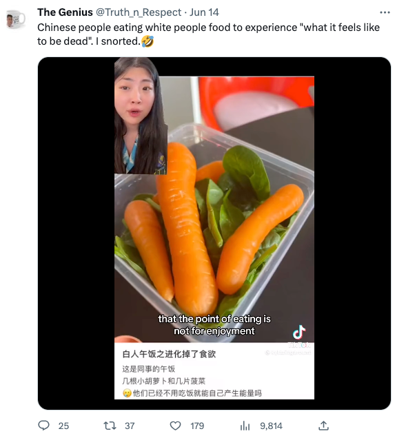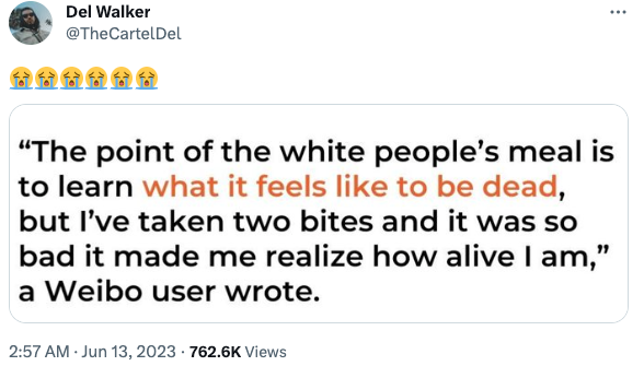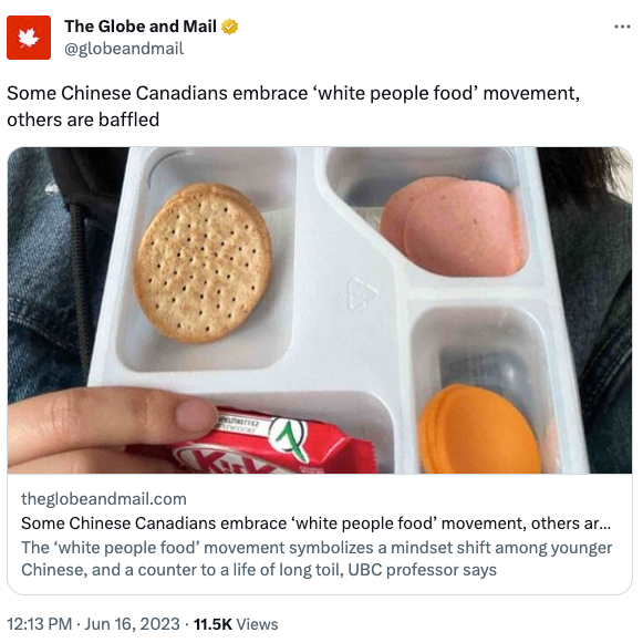 还有华人网友称:“白人餐让你有死亡一样的感觉,我从来不吃多过两口。” 结果,白人网友气疯了。 事情现在传到加拿大,主流媒体也开始急了。 加拿大各大英文媒体近日也发表一篇报道,采访几名加拿大华裔,讲述加拿大华人是如何看待白人餐。