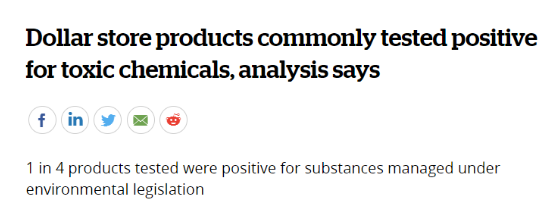 令人诧异的是,一元店里25%的产品都检测出含有加拿大环境保护法严格管理的物质。