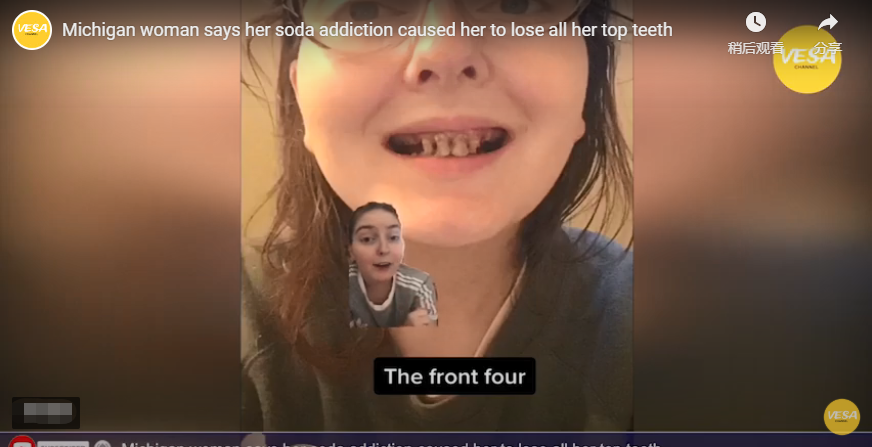 还整天饮料不离手?加拿大妹子狂喝汽水十年,还不爱刷牙!下场感受下