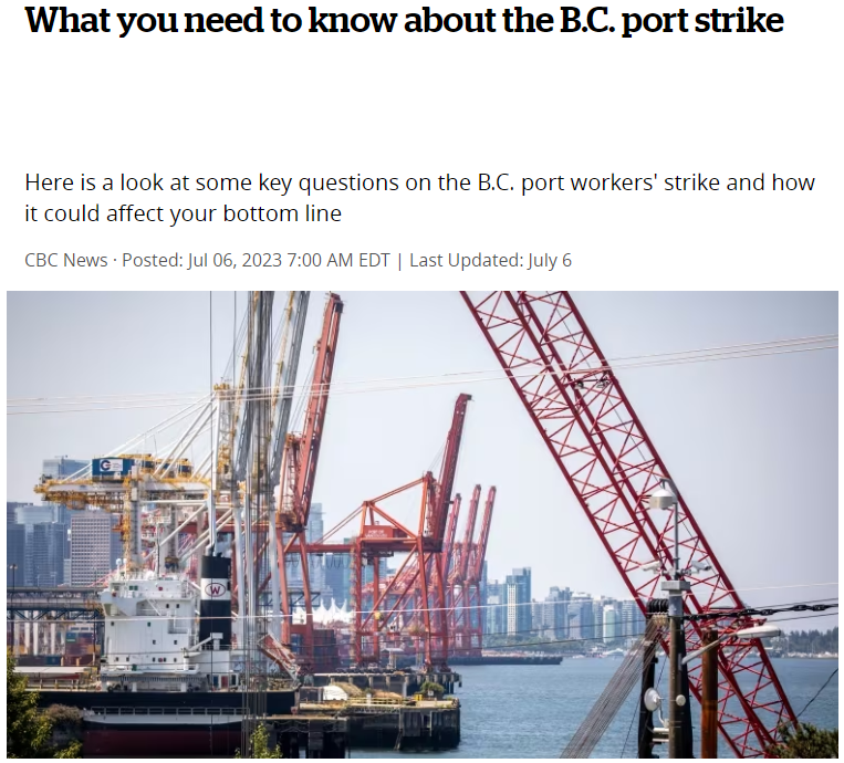 由于BC省港口工人的罢工行动仍在继续,很多企业和个人都担心,这场罢工将对加拿大的经济造成很大的影响。 据悉这次罢工行动使得货物积压,也耗尽了商店的库存,因此不少短缺商品的价格都出现了提升。 要知道,这次罢工影响了约7400名码头货物装卸工以及该省30多个港口的49家滨水雇主,其中包括加拿大最繁忙的温哥华港。 根据BCMEA网站,到2020年,温哥华港处理了加拿大16%的贸易总额,为全国GDP贡献了27亿加元。 港务局表示,温哥华港拥有29个主要码头,处理北美最多样化的货物。 它的规模相当于加拿大排名其后的五个最大港口的总和,是通往全球170多个贸易经济体的门户。 BC省政府还表示,该省西北海岸的鲁珀特王子港是加拿大第三大海港,每年处理超过3000万吨货物。 安大略省伦敦西部大学(Western University)艾维商学院(Ivey Business School)运营管理学教授Fraser Johnson也将温哥华港描述为“通往东方的门户”。 Fraser表示:“这个港口的主要产品是家用和消费产品,比如电子产品、时装、电器、建筑材料、从日本和韩国进口的汽车、经销商为汽车提供服务的汽车零部件、企业设备和机械。”