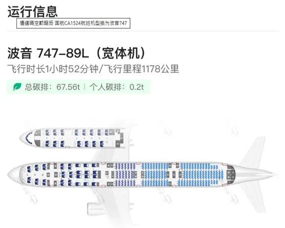 今天(11日),国航CA1524航班正常执飞,不过机型换了——从空客A330-300更换成波音747-89L。