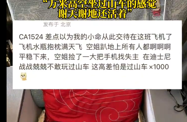 就在这起空难发生的前一天,也就是昨天,中国国际航空一个从上海飞往首都北京的航班遭遇严重乱流,机舱内一片混乱!