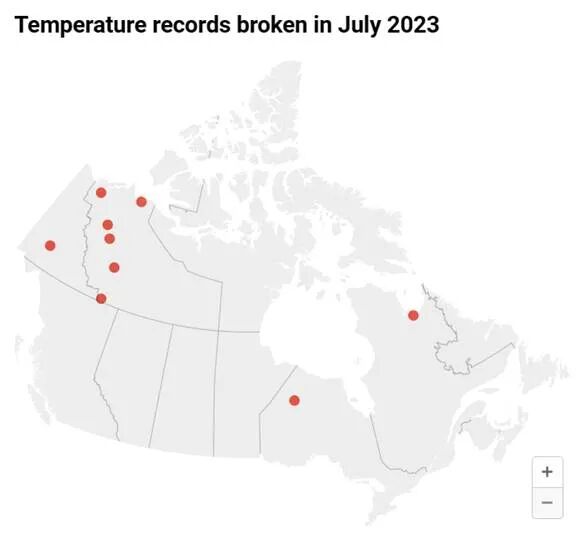 7月8日,位于北冰洋沿岸的西北地区保拉图克打破1990年创下的每日最高气温记录,气温达到29.6摄氏度。