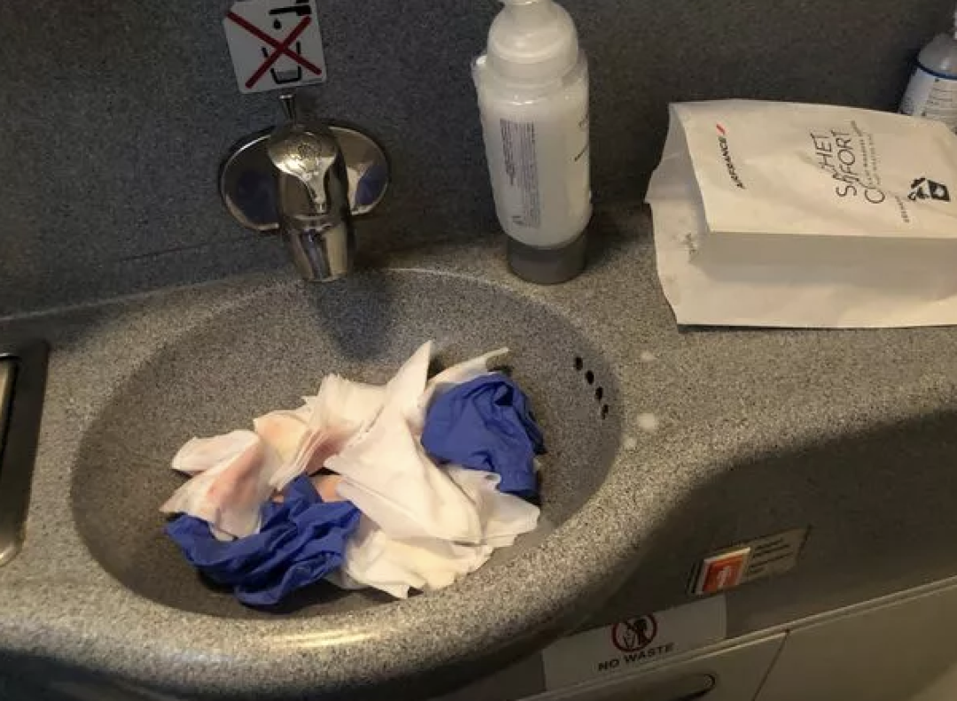 前一天,在巴黎飞往波士顿的航班上,一名男性乘客“出血”了,而且清洁工只清理了座椅,忘记了地板。