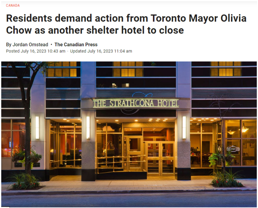 多伦多市区一间作为庇护所的酒店Strathcona Hotel即将对无家可归者关闭,恢复酒店运营。一批需要庇护的人士接到通知后表示不满。