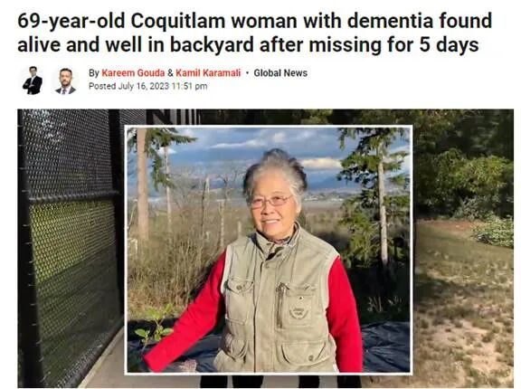先是刚从上海来加拿大3个月的69岁华人出门散步之后失踪,在树林里面流浪了5天,出动了百人寻找才在民宅后面找到;
